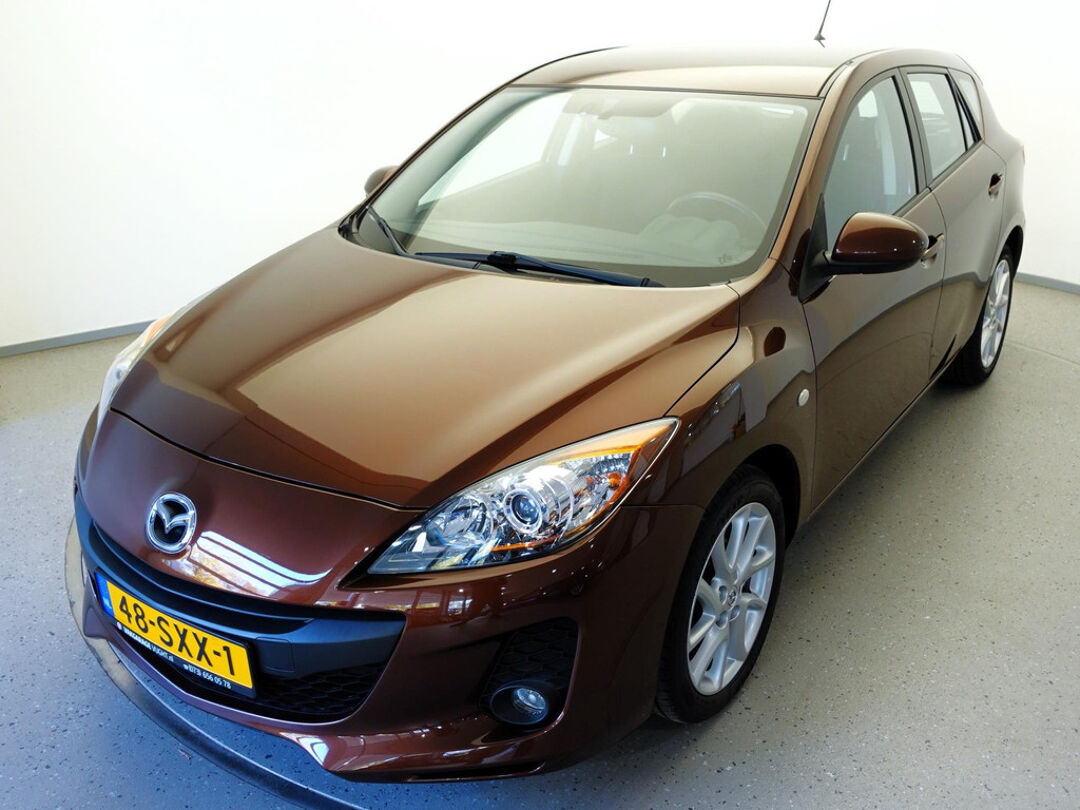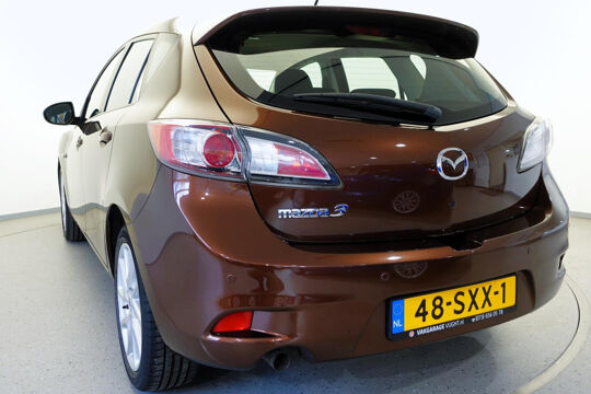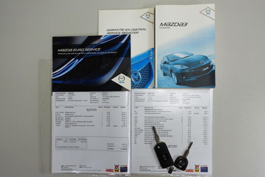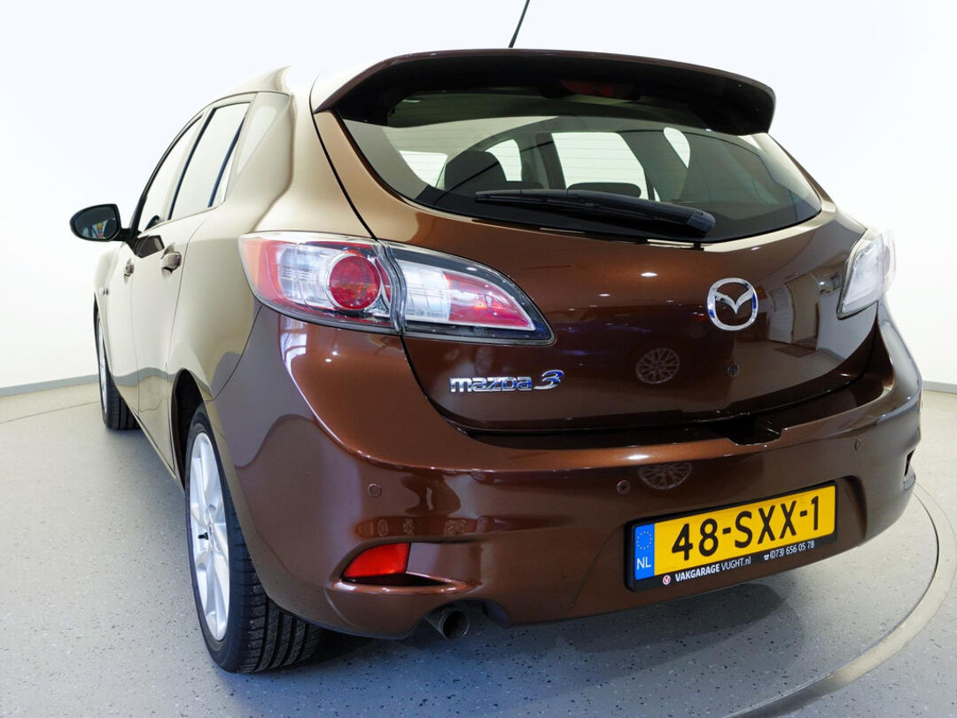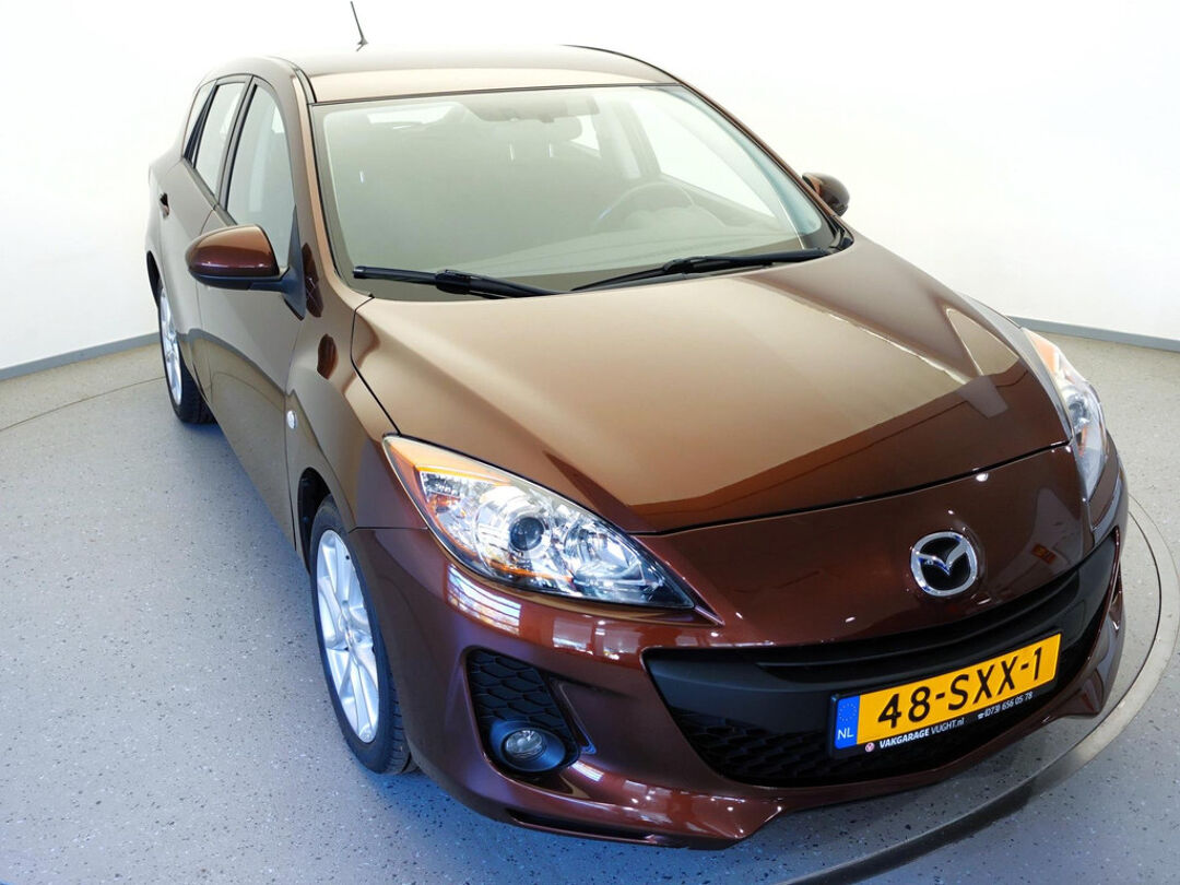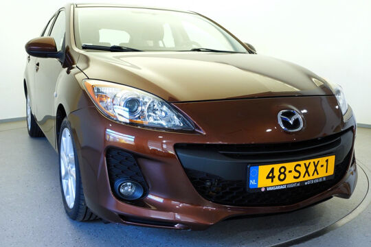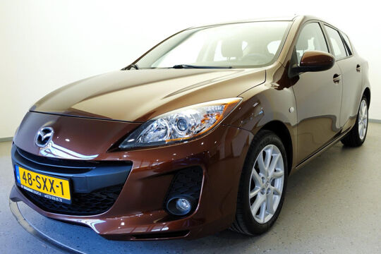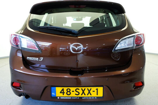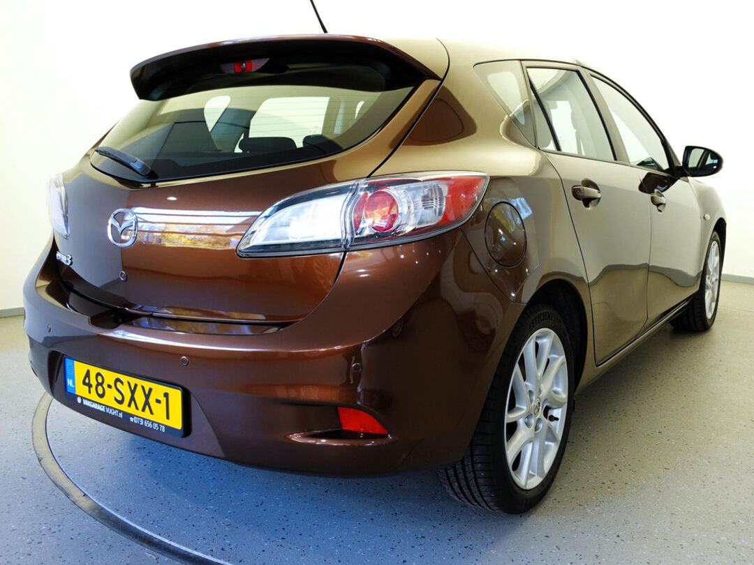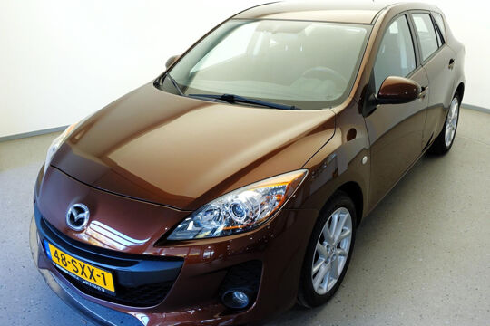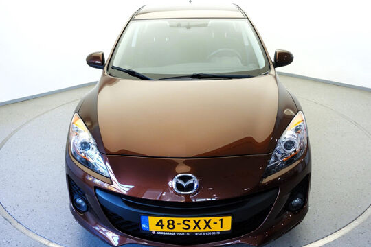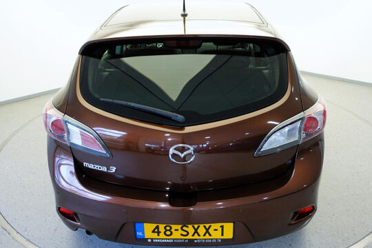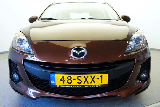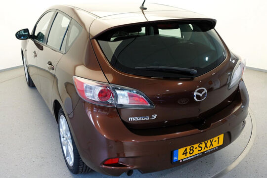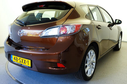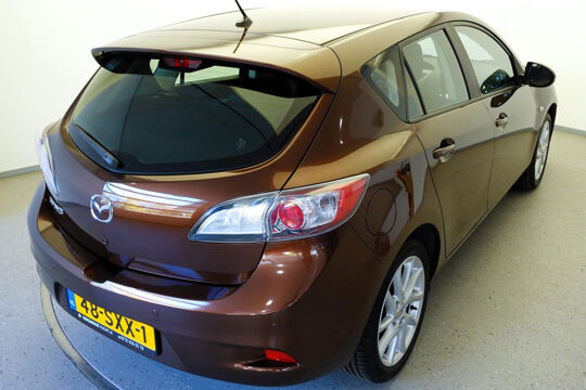 Ongelooflijk, maar echt waar: rechtstreeks afkomstig van de 1e eigenaar met slechts 27.000 km op de km-teller, een mooie MAZDA 3 hatchback 5-deurs in de luxe "TS Plus Navigator"-uitvoering met o.a. airco met automatische dual-zone climate control, cruise control, originele radio/CD/MP3-speler met 4,1-inch full colour Mazda-navigatiesysteem met TomTom software incl. handsfree Bluetooth telefoonkoppeling, multimedia middels USB- en AUX-input, in hoogte en lengte verstelbaar multifunctioneel lederen stuurwiel, verwarmbare voorstoelen met in hoogte verstelbare bestuurdersstoel en instelbare ruglendesteun, middenarmsteun, elektrisch verwarmbare voorruit, elektrisch verstelbare, verwarmbare en inklapbare buitenspiegels met dodehoek-sensor, licht- en regensensor, parkeersensoren in achterbumper, automatisch dimmende binnenspiegel, elektrisch bediende portierruiten voor en achter, afstandsbediende centrale deurvergrendeling, mistlampen in de voorbumper, originele lichtmetalen velgen 17-inch met zomerbanden, 15-inch lichtmetalen velgen met winterbanden, metallic-lak: "Autumn Bronze Mica", etc.