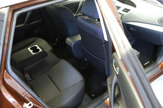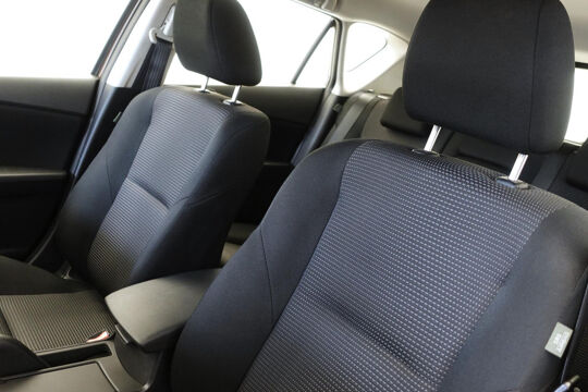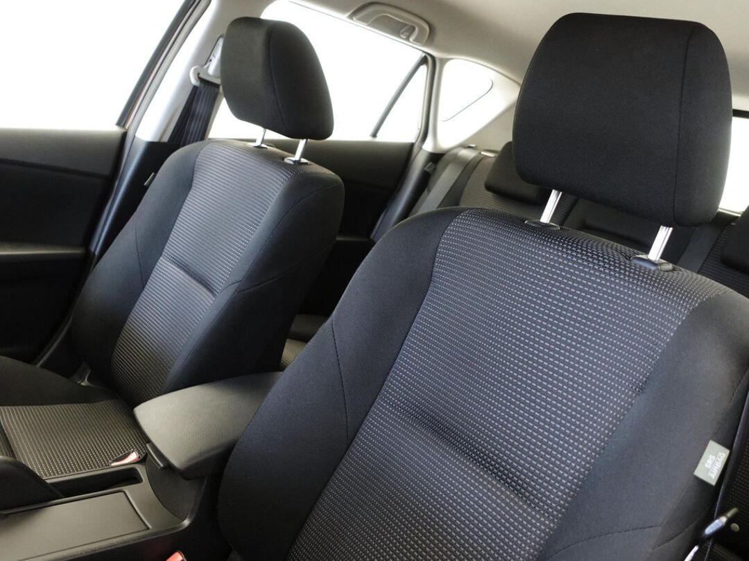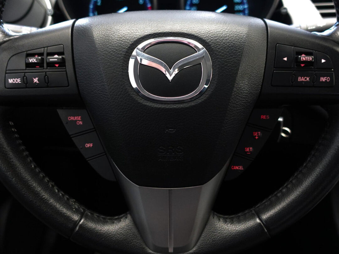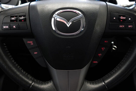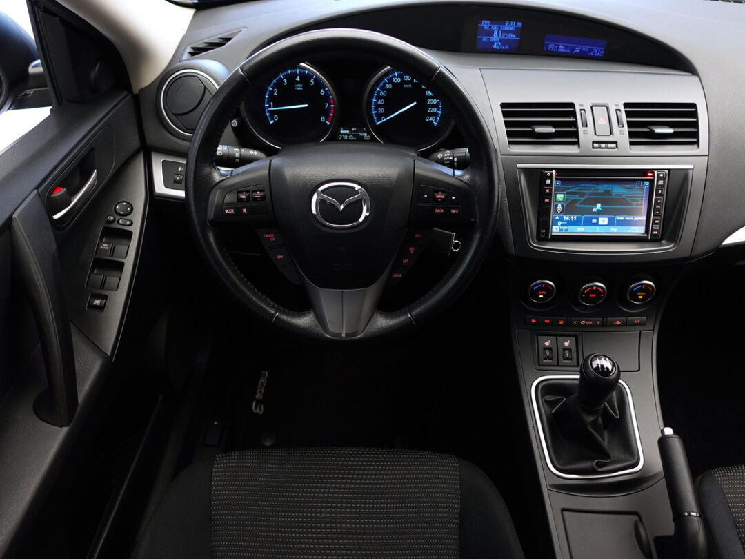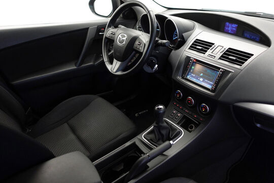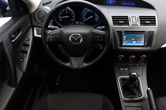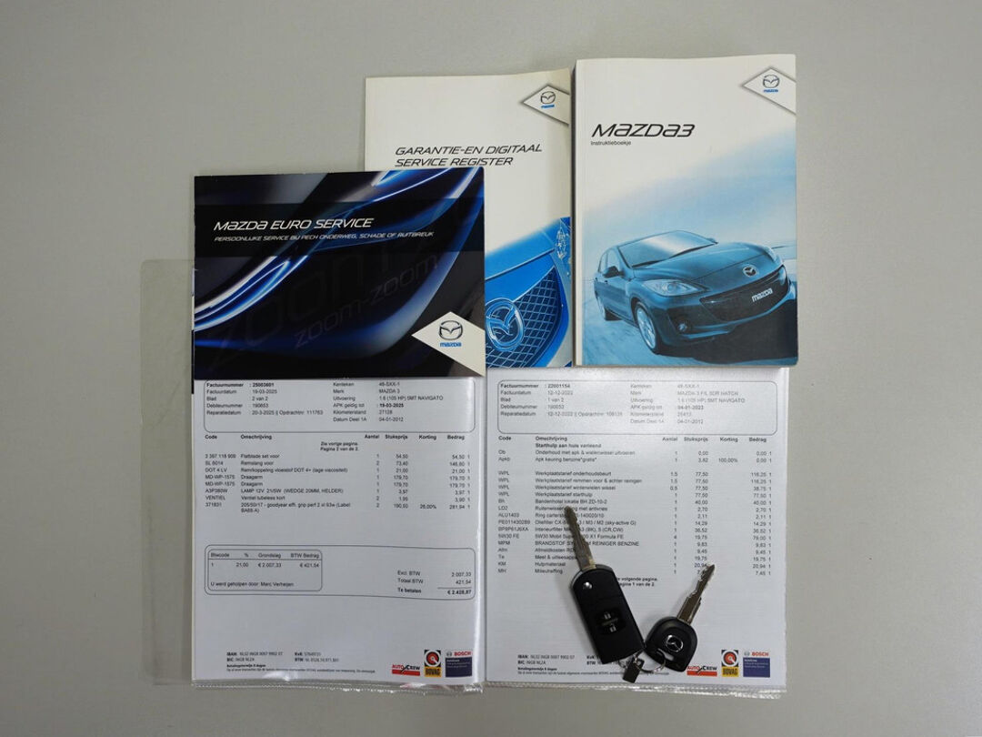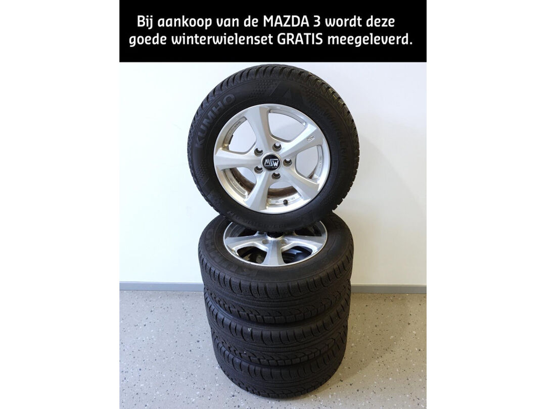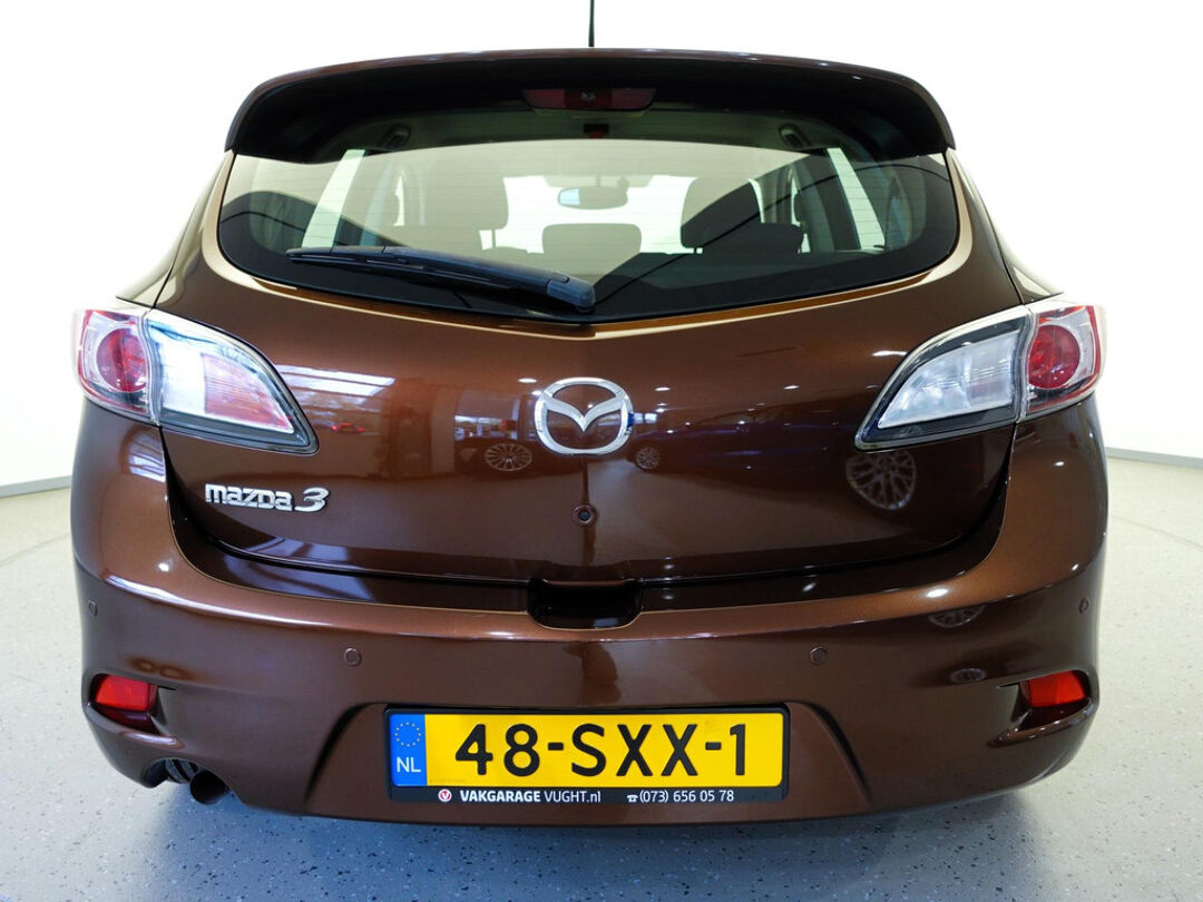 Ongelooflijk, maar echt waar: rechtstreeks afkomstig van de 1e eigenaar met slechts 27.000 km op de km-teller, een mooie MAZDA 3 hatchback 5-deurs in de luxe "TS Plus Navigator"-uitvoering met o.a. airco met automatische dual-zone climate control, cruise control, originele radio/CD/MP3-speler met 4,1-inch full colour Mazda-navigatiesysteem met TomTom software incl. handsfree Bluetooth telefoonkoppeling, multimedia middels USB- en AUX-input, in hoogte en lengte verstelbaar multifunctioneel lederen stuurwiel, verwarmbare voorstoelen met in hoogte verstelbare bestuurdersstoel en instelbare ruglendesteun, middenarmsteun, elektrisch verwarmbare voorruit, elektrisch verstelbare, verwarmbare en inklapbare buitenspiegels met dodehoek-sensor, licht- en regensensor, parkeersensoren in achterbumper, automatisch dimmende binnenspiegel, elektrisch bediende portierruiten voor en achter, afstandsbediende centrale deurvergrendeling, mistlampen in de voorbumper, originele lichtmetalen velgen 17-inch met zomerbanden, 15-inch lichtmetalen velgen met winterbanden, metallic-lak: "Autumn Bronze Mica", etc.