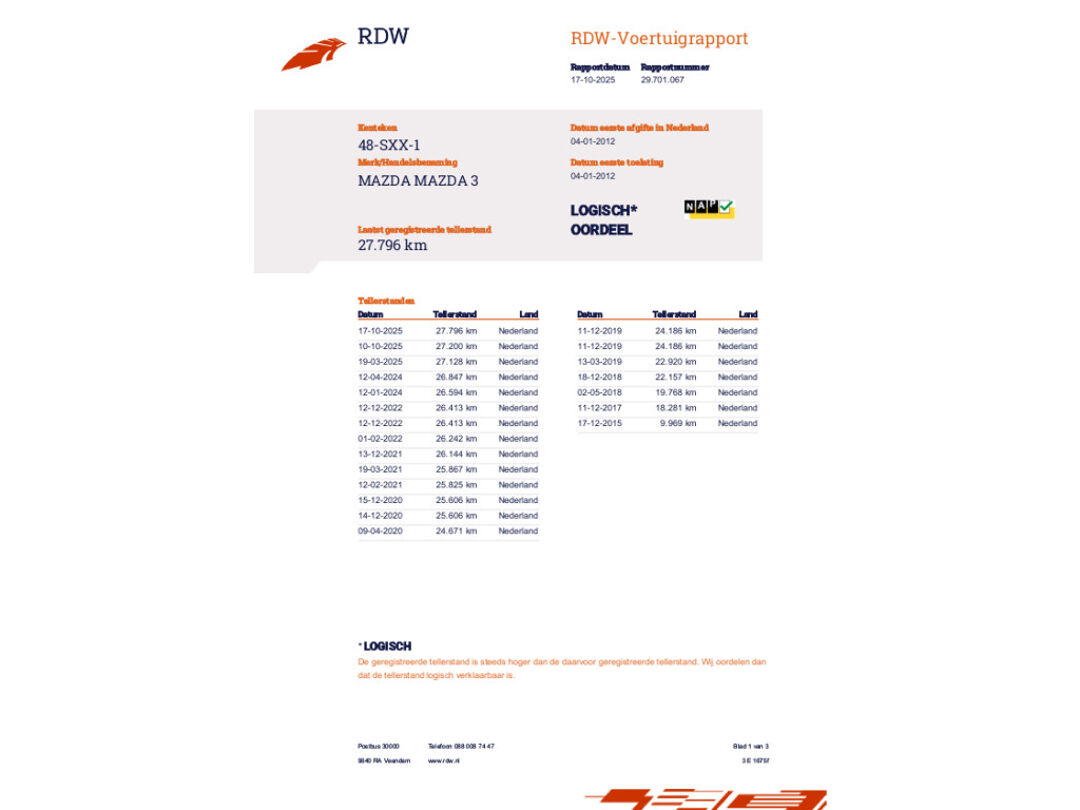 Zoals reeds eerder vermeld is deze auto afkomstig van de 1e eigenaar (NB: het kenteken is eenmalig onderling overgeschreven t.g.v. overleden partner) en volledig aantoonbaar bij de MAZDA-dealer onderhouden (alle facturen en boekjes zijn bij de auto aanwezig!).